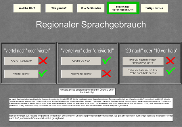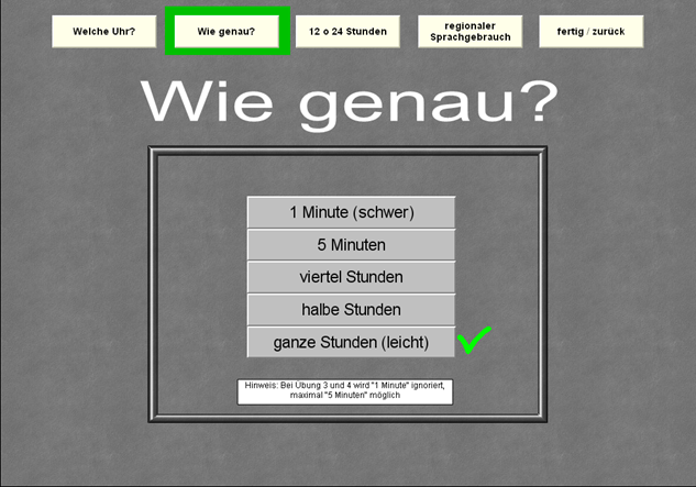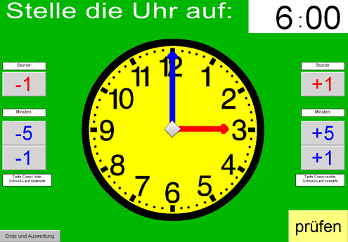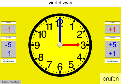 Anzeige oder Ansage von Uhrzeiten, Schüler muss entsprechend stellen