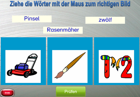 In "Bilder und Wörter" sind mehr als 650 Bilder einhalten. Der Schüler kann vielfältige Übungen durchlaufen, z.B.