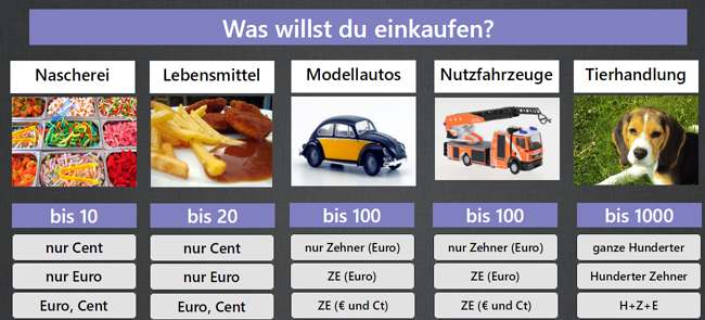 Verschiedene Schwierigkeitsgrade von 10 Cent bis 1000 Euro als Gesamtbetrag