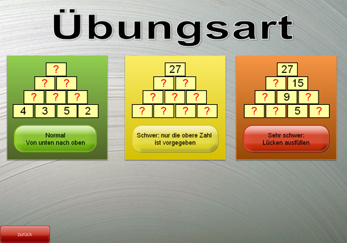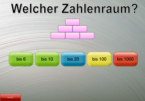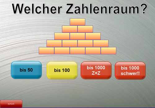 Zahlenraum einstellbar bis 10, 20, 50, 100 bzw. 1000