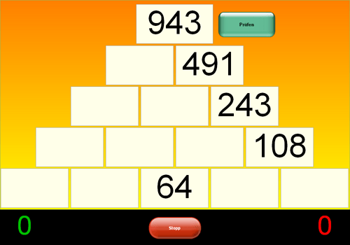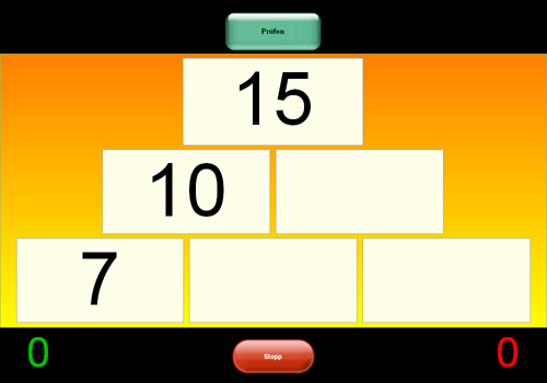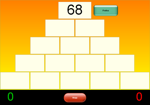 Aufgabe: Die Mauersteine müssen richtig zusammengezählt werden.